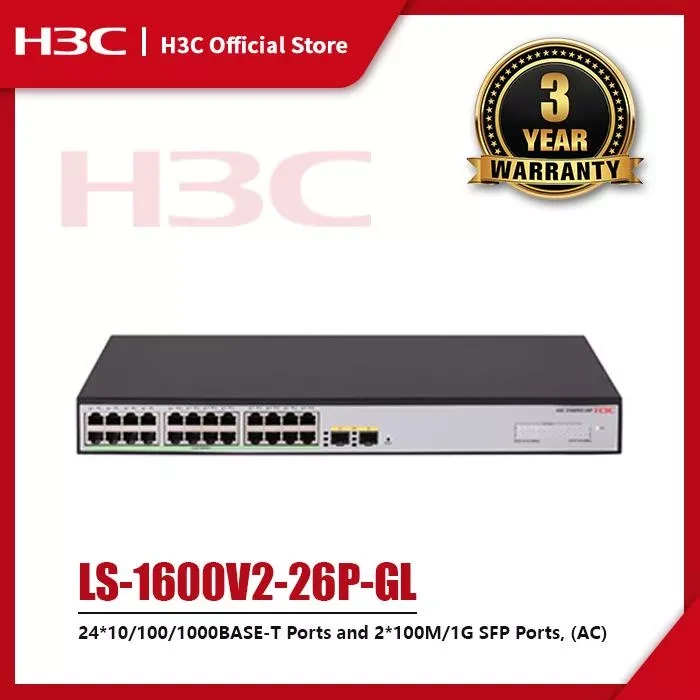 Коммутатор, H3C, LS-1600V2-26P-GL, управляемый L2, 24*10/100/1000BASE-T RJ45 , 2*100M/1G SFP Порт